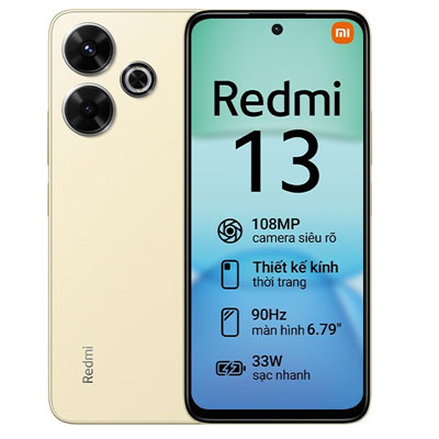 Xiaomi Redmi 13 8GB/128GB hứa hẹn sẽ là thiết bị smartphone giá rẻ gây bão tiếp theo của nhà Xiaomi với thiết kế mặt lưng kính cao cấp cùng bộ thông số ấn tượng như camera 108 MP, viên pin 5030 mAh, tần số quét 90 Hz, hiệu năng mạnh mẽ,... mang đến khả năng sử dụng hiệu quả cho người dùng với mức giá hợp lý.